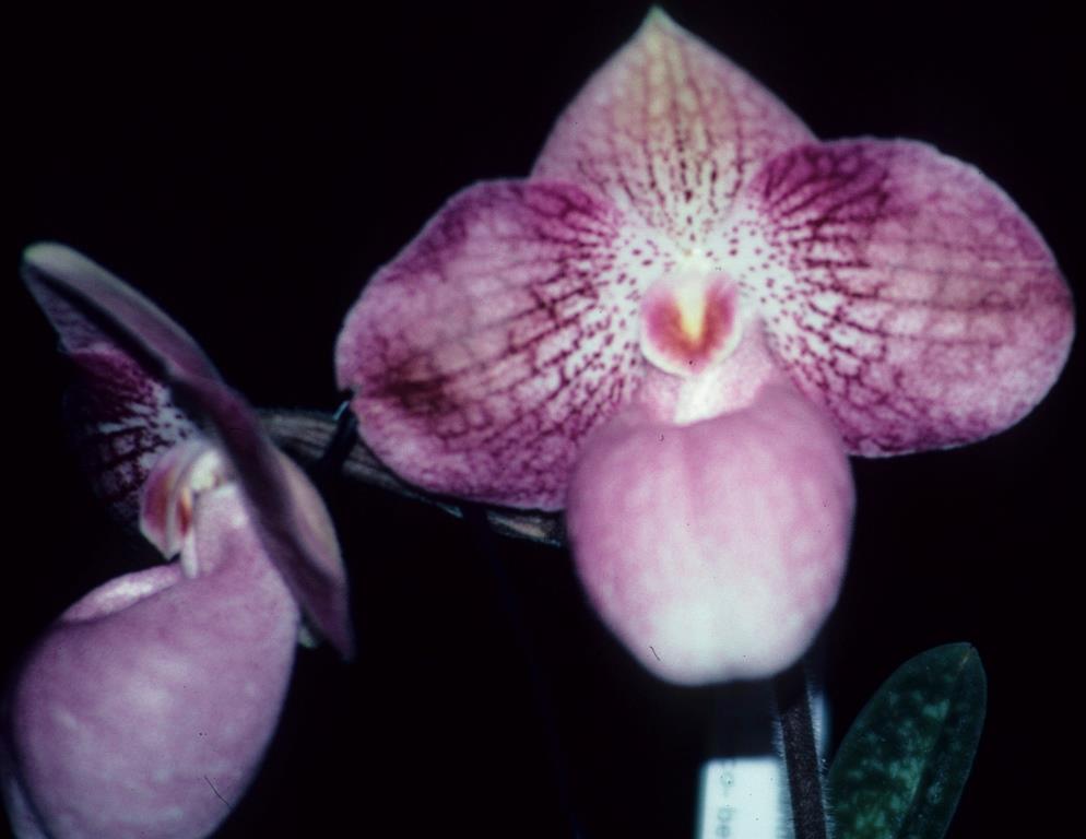 View on AOC website ↗Petals and sepals striped 78C. Ventral sepal spotted 78C. Labellum suffused purple 75D. Judged by appreciation.