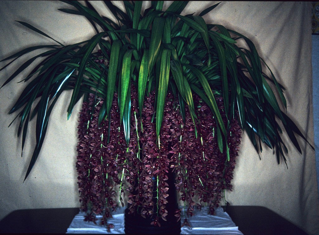 Segments greyed yellow 161A. Labellum greyed purple 187B. Eighty six inflorescences. Total 3440 flowers. Stems 530mm.
