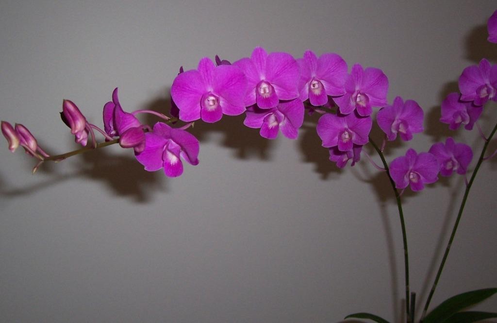 35 inflorescences of 600mm with 180nflowers +196 buds (12 +6 relevant); petals and sepals Purple group NN78; labellum Purple group NN78 with white spot NN 155C