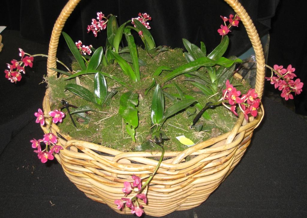 3 inflorescences of 160mm with 18 flowers and 3 buds (8+2 relevant); petals Red 46A with NN155D tips; sepals Red 46A; labellum Yellow 13A marked Orange red 34A