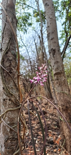 1 inflorescence of 395mm with46 flowers and 4 buds; petals and sepals Red/purple 69C; labellum purple 78C